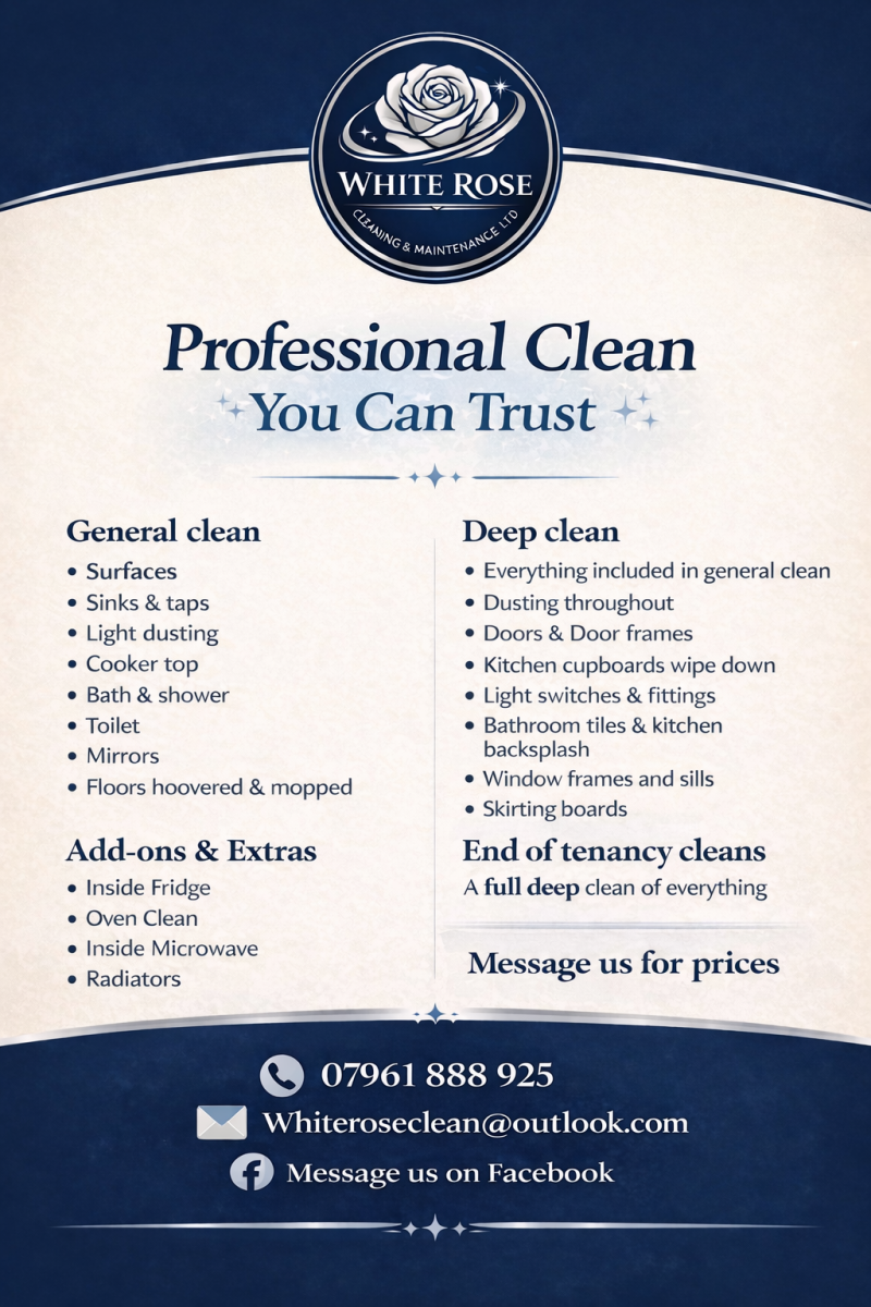 At WhiteRose Cleaning & Maintenance, we pride ourselves on delivering exceptional cleaning services. But don't just take our word for it! Here's what our valued clients in Sheffield have to say about their experience with us. Discover why so many trust us to keep their homes and businesses spotless.
